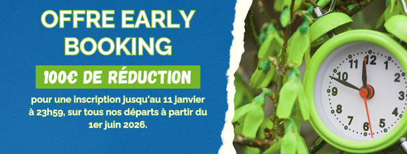 Bénéficiez de 100€ de réduction pour une inscription confirmée entre le 1er décembre 2025 et le 11 janvier 2026 à 23h59 sur un départ postérieur au 1er juin 2026.